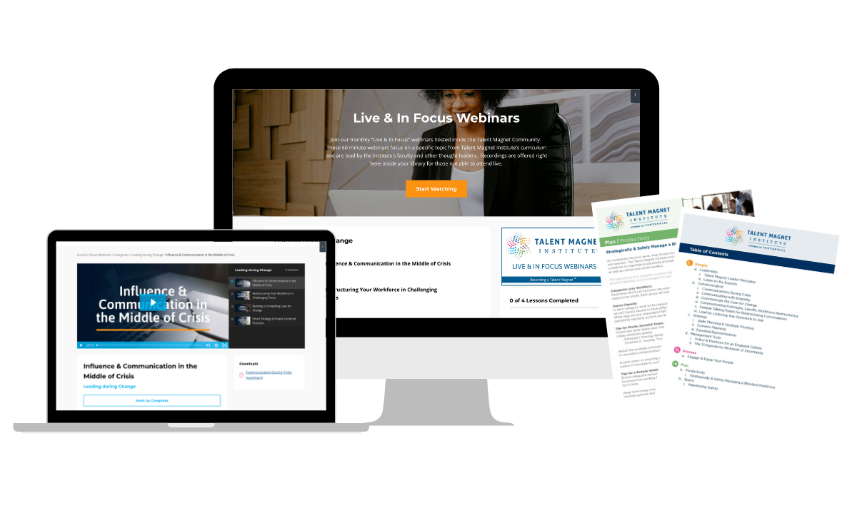 One of our founding core beliefs at The Talent Magnet Institute is this: the definition of "success” for leadership should and can be redefined. Success in leadership should be viewed as much more holistic than most people consider. The Talent Magnet Community knows that in order to lead others successfully, they must first practice self-care by leading their own self well. Our online membership and consulting opportunities are based on this belief. Click the button below to learn more about the Talent Magnet Institute and our exclusive offerings.